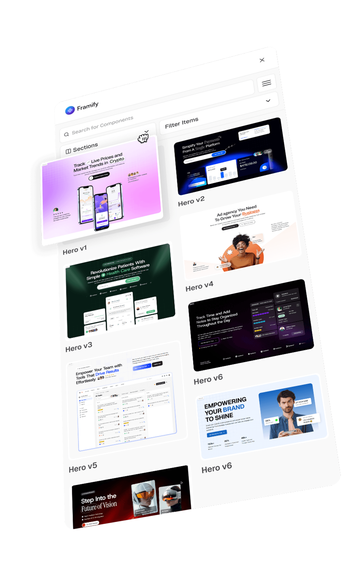 Framify gives you a full set of components you can drop into any project and customize in minutes.