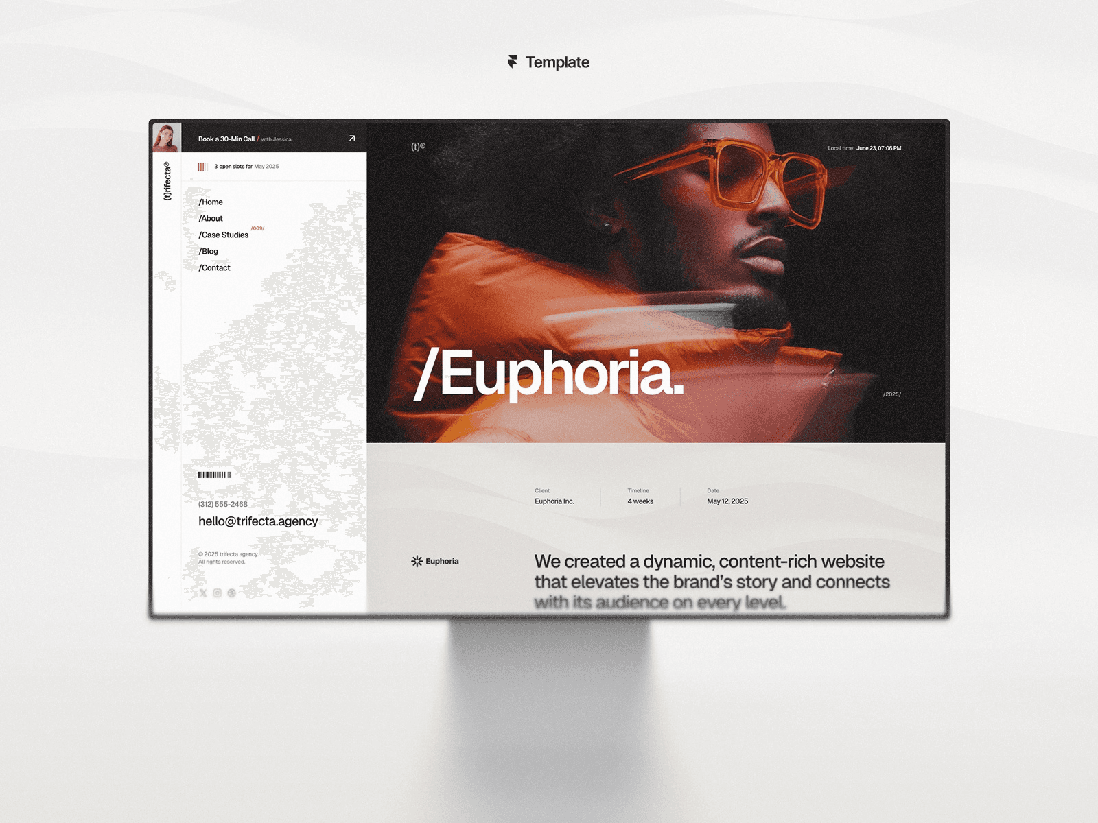 Trifecta is a bold Framer agency template, featuring