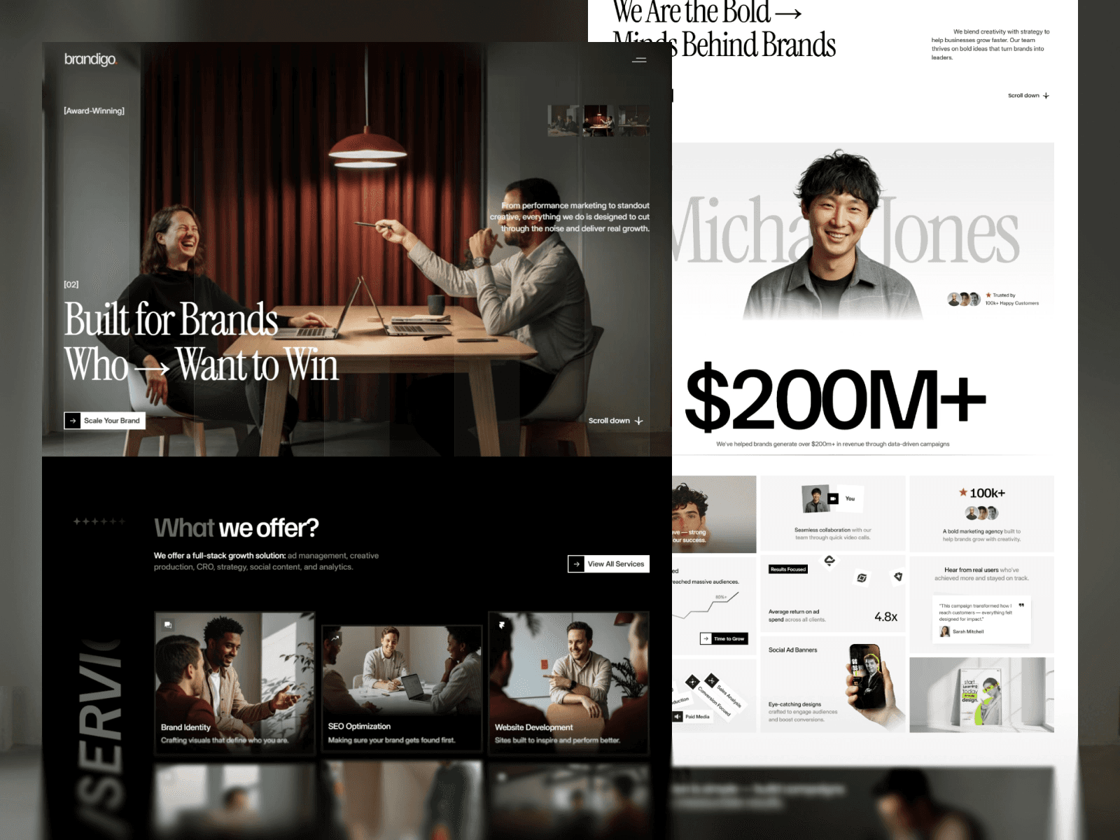 Brandigo is a bold and modern Framer agency template built for,