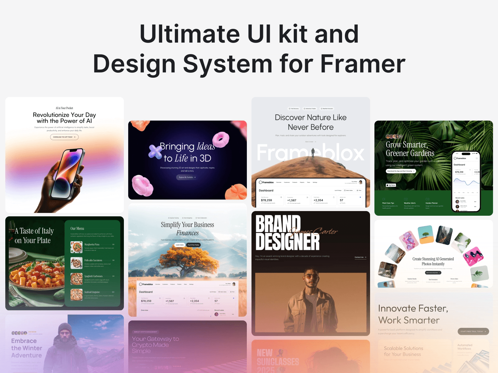 Interaction Ready: Every component comes pre-configured with native Framer interactions and flexible variants for buttons and cards.